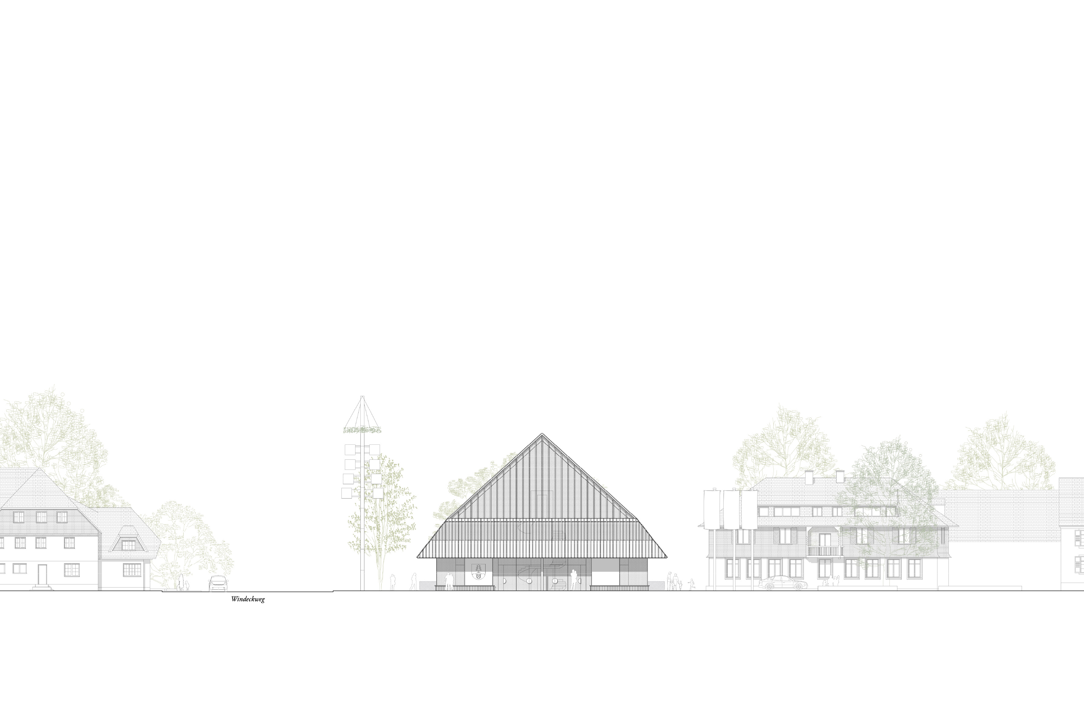 Hinterzarten beherbergt den Zauber des Schwarzwaldes. Ob als Wintersportler oder Wanderer, der Ort ist willkommener Anlaufpunkt. Dies illustrieren auch deutlichst die vielen Hotels um die Kirchwiese. Es steht der Gemeinde zu, ein angemessenes und der Besonderheit des Ortes entsprechendes Rathaus als Treff- und Versammlungsort, aber auch als Ort der Repräsentanz zu erhalten. Der Entwurf verwebt hierbei das identitäre Bild des Schwarzwaldhauses mit dem Rathaus-Urtyp der Basilika zu einem modernen, aber einzigartigen Gebäude für Hinterzarten.
